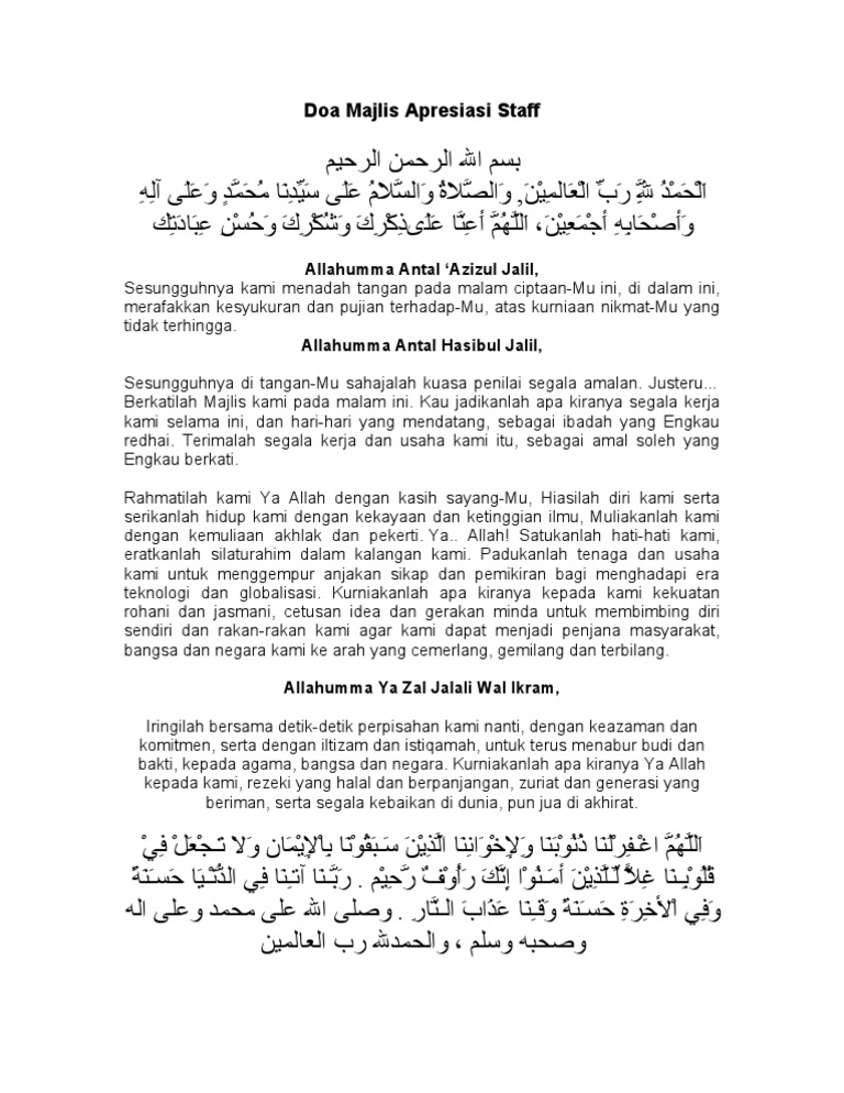 Doa Majlis Apresiasi Staff Pdf