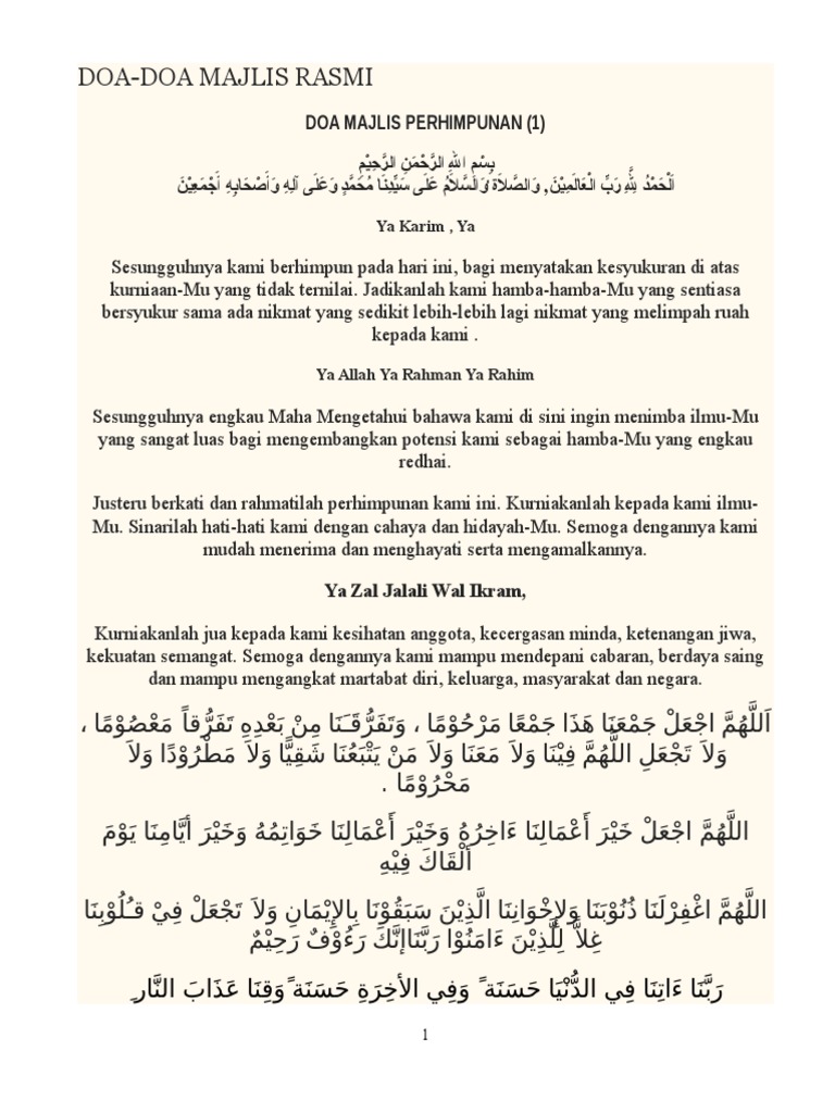 Doa Majlis Perhimpunan 1 Ya Karim Ya Pdf