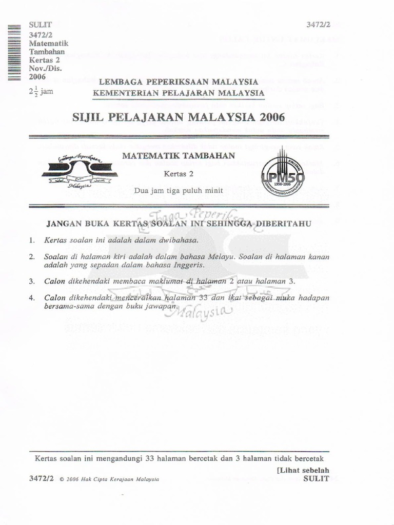 Soalan Sebenar Matematik Sijil Pelajaran Malaysia Spm 2019